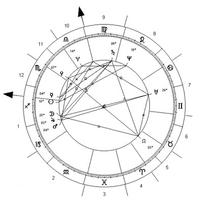 Siendo Júpiter el representante de los valores morales y del acatamiento de la ley, su unión con el trasgresor y exaltado Marte no es de muy buen augurio, en el sentido de respeto y aceptación a las normas. Marte unido a Júpiter, más bien expresa la idea de “yo hago mi propia ley”, y si es necesario, se recurre a la violencia (Marte), de forma premeditada, tal como expresa el aspecto armónico entre aquellos y el frío Saturno. Patrizia organizó el asesinato de su marido bajo estas premisas, pero cometió el elemental error de confiar en extraños para ejecutarlo. Si lo hubiera hecho sola o a su manera, quizá el resultado hubiera muy sido diferente. Es peligroso confiar o dejarse asesorar por los demás cuando el sector 7 se encuentra perturbado por presencias planetarias inquietantes, en este caso por Urano que, además, de afectar a los planetas referidos, establece un aspecto exacto de tensión con el sector 10 del tema natal, anticipando que cualquier acción agresora, orquestada con los demás, puede tener efectos funestos para el destino y propiciar una hecatombe radical y súbita, a la forma uraniana.