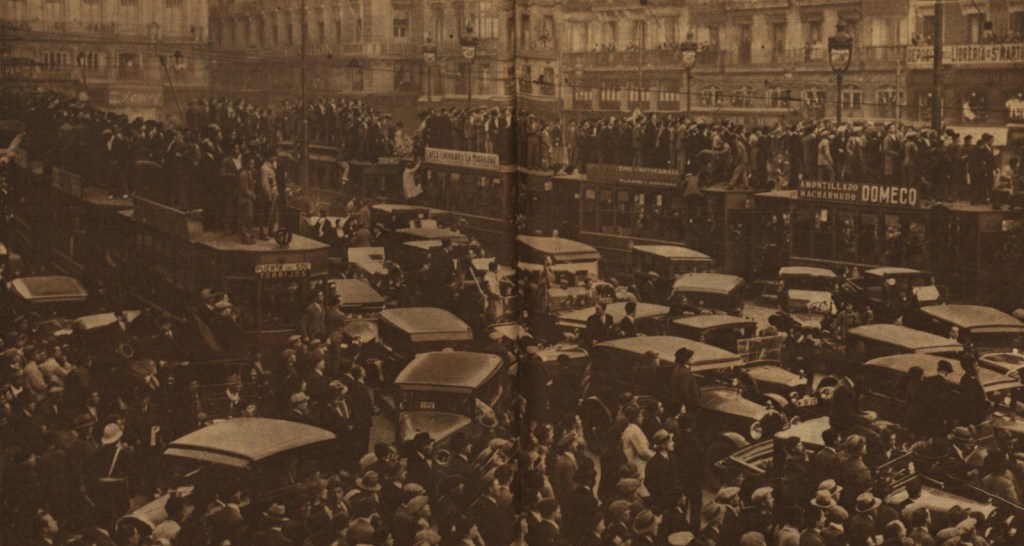 El martes 14 de abril amaneció radiante y la gente se echó a la calle para celebrar los resultados de las elecciones municipales celebradas el domingo anterior. Sólo se conocían los resultados parciales de las capitales de provincia, pero se sabía que los partidos antimonárquicos (republicanos, socialistas y comunistas) habían derrotado a los monárquicos y, dado el carácter plebiscitario -¿República o Monarquía?- que había tenido la campaña, la conclusión era evidente: la monarquía había sido derrotada y debía proclamarse la República. Al rey, sólo le quedaba el exilio o resistir ante lo inevitable. Eligió la primera opción, no sin antes comprobar que la Monarquía había perdido todos sus apoyos, sobre todo el sostén de las fuerzas armadas. Ese mismo día, solo y aturdido, Alfonso XIII abandonó el país para no volver nunca más.